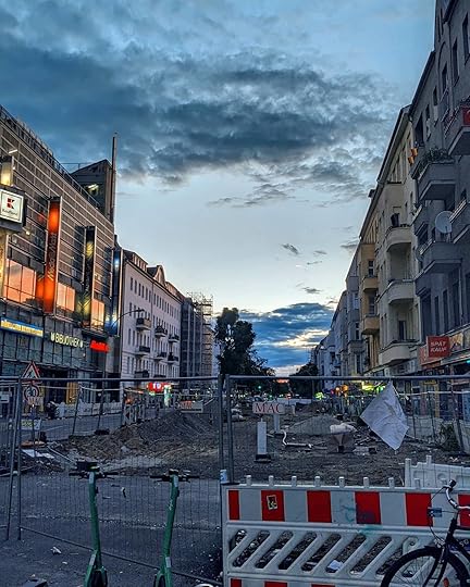 Good to know I can still care about sunsets after walking nearly 9 kilometres in wholly inappropriate shoes. But K became even more of a Berliner yesterday because he bought himself a second hand bike and we wheeled it (no air in the tires) around the city looking for this one particular restaurant which was further away than I originally thought. Oh well. How else to get to know a place than to wear out the soles of your shoes walking around it? Enjoying it now because when we return in October it's going to be cold and awful but still endearing I hope. #berlinstories #minnaindeutschland