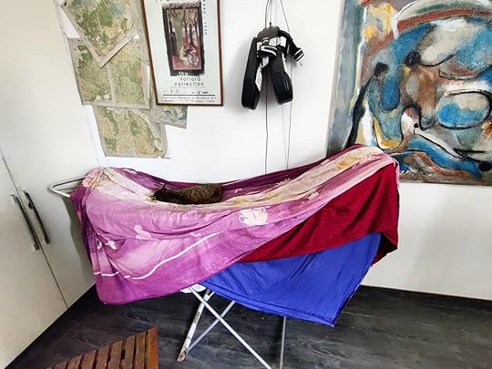 No rest for the wicked, she says as she sets up her work space and then instantly lies down on the padded bench next to it. It's still cold enough to run the heating at night so we lifted this desk in from the frigid bedroom to the sunny sitting room where we are currently also eating and reading and exercising (I did some hula hoop this morning to justify dragging it all the way from Delhi.) the only thing that would make this feel more exactly like home (K and I locked inside a flat together, the outside world just theoretical at this point apart from a pretty view) would be three fat cats who I already miss. #minnaindeustchland #quarantinediary