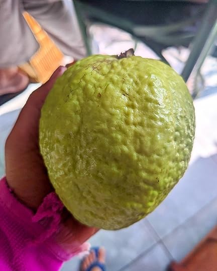 Meanwhile in our garden, our little guava tree in its pot is three years old and has produced GIANT fruit this year. Four of this size, which I have just been eating one by one, plucking them off the tree. Three small ones ripening right now. And after that, more flowers will come. We were slow to harvest this year because of the lockdown (and we have no idea what we're doing without Ram Lal) but now it's growing season for lots of exciting things. It's not a sexy fruit--who ever wrote a poem to a guava--but it's one of my three favourites to be eaten AS fruits not cooked or baked or tampered with.(the others are mangoes and grapes.) #eatwhatyougrow #terracegarden #guava