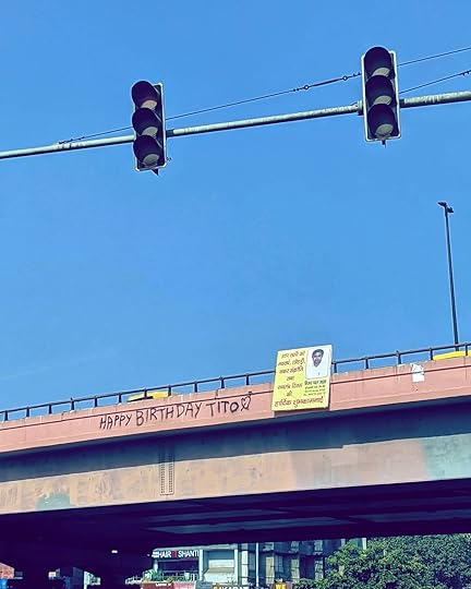 A blue sky day. Happy birthday Tito, whoever you are, someone must love you very much. #graffiti #delhidiary