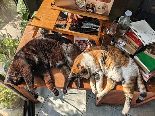 On Saturdays, we nap. (A messy desk, as I told the society photographer who once shared my desk, back when I worked at a tabloid, is the sign of a creative mind.) #catstagram #naptime #olgadapolga #squishytheblackcat