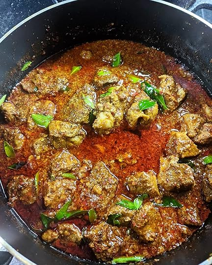 When this whole situation started, I was an occasional cook. I dabbled from time to time and I was ok at it. Not bad. I enjoyed cooking as a thing I did every now and then, especially since I got my Instant Pot and pressure cooking became so easy. Besides it's fun to cook when you don't HAVE to, much like everything else. Well. It's been a long nine months without our cook/housekeeper and in that time, I have learned the joys of feeding both myself and the person I love. And I began to cook, not just for fun but also to, you know, eat. Which is not always fun and some days we rely on home delivery or something but I've gone from decent to competent. Especially Indian food which involves so many steps sometimes! It's like Indians hate women (Hmmm) so much grinding and roasting separately and rolling and frying. At least I have K who actively helps. But this is a recipe sent to me by my father, for Kundapur Mutton Ghee Roast, except the mutton has been replaced by unmentionable. It involves all my newly acquired skills: dry roasting, grinding separately, remembering to take the meat out of the freezer in time to marinade, pressure cooking, etc etc. It is a triumph (& it has enough ghee to give you a heart attack by looking at it) & i cooked it by myself. #cooking #gheeroast #covidchef