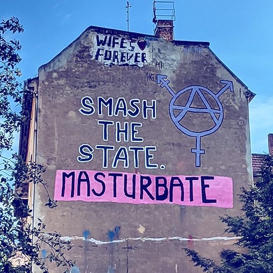 But also "wifes forever." This grafitti emblazoned on a wall directly opposite a primary school so I imagine the children have lively discussions about anarchy and touching yourself. #berlinna #graffiti
