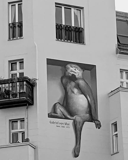 Just a monkey looming over Boxi. (But really celebrating both Austrian artist Gabriel von Max and his most famous painting "Monkeys As Art Critics" from which this is a detail. von Max, I find from further Googling, really liked painting monkeys, I mean so much that if you knew him back then you'd be like "oh the monkey guy." He owned a capuchin monkey which he then bred in Munich and then painted them all both living and dead.) Anyway this was just street art when I saw it and photographed it yesterday but now I'm looking at the wise little face of the monkey looking down on all of us and thinking "Huh. This shit is deep." Who's judging me, Monkey? #graffiti #streetart #berlinna #boxhagnerplatz