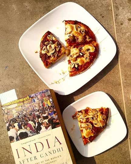 Was craving a desi pizza with a side of desi politics. This is as old school as it gets, pizza the way my mother made for me: Harvest Gold white bread base, tomato puree sauce, Amul pizza cheese and mushroom topping. Is it gourmet? It is not. Is it delicious? Damn straight. (For more book recommendations that are more book, less cooking please follow my #bookstagram account @minnareads) #throwback #nostalgiafood #lunchfromthe90s #ramachandraguha