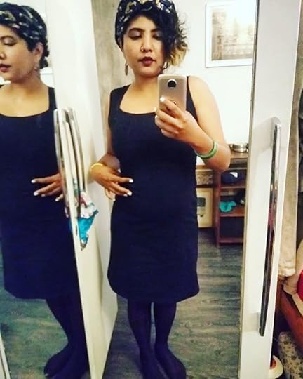 After a very social weekend, this week is completely empty (so far) so indulge my third #whatiworetoday post in a row knowing that you probably won't get any more from me for a little while. Also I've been channeling creativity into clothes instead of painting or poetry, but who says how you style yourself can't be an expression of artistic aesthetic as well? Wore this to a party on Saturday, a very simple black dress, but the joy was the structure of it. I bought it at an export surplus stall in East Delhi and it's apparently athletic wear, so there's a lot of lycra panels which work to hold shit up and keep shit down and so on. My scarf turban is from Sarojini Nagar and is patterned with little brown whippets. Wore a red trench coat on top and felt like Carmen Sandiego. #littleblackdress #streetshopping