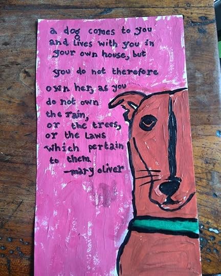 I want to do a lot more painting in 2020 (but for fun. I need something to do that I love that doesn't make me think of money. A hobby.) I got acrylic paints as part of a birthday present and have really been enjoying working with them, especially mixing colours and how bright everything stays, even after it dries. My friend had a birthday yesterday so I painted him a picture of his favourite animal: the dog; and chose a Mary Oliver poem (who I am currently reading) as the text. It looks recognisably doggy, don't you think? #painting #dogstagram #maryoliver