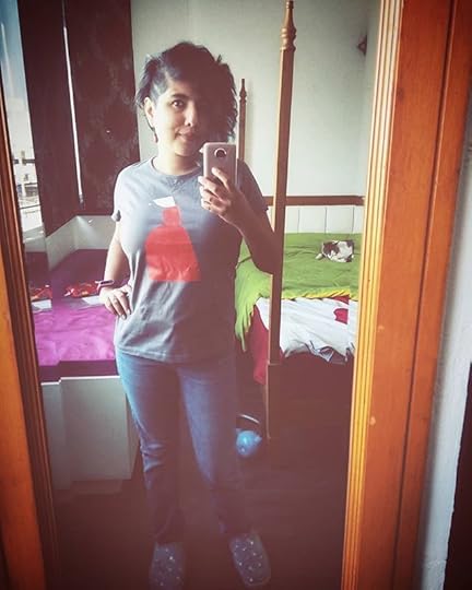 Not to be left behind by me in the custom made clothes game, K decided to get some t-shirts printed online with his own designs, so, of course, I asked for two literary tees as well. This is one of them, although this hairstyle and you know, the rest of it, would never be allowed in Gilead. Bonus: bedroom slippers and bedroom Bruno. #whatiworetoday #margaretatwood