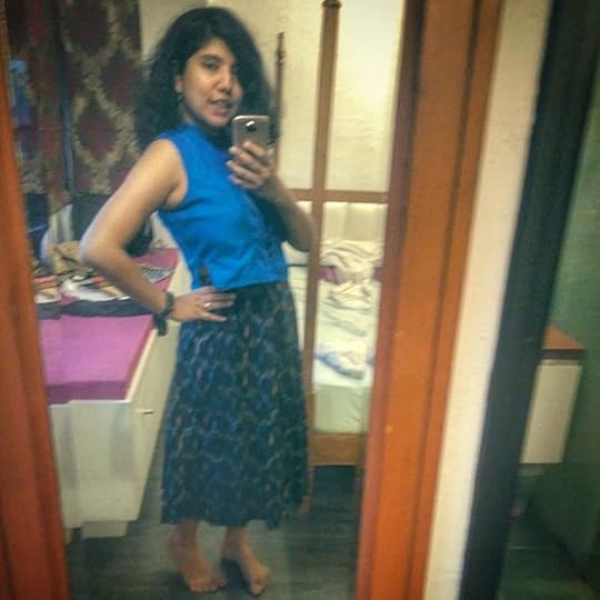 Not my best selfie work, but this is what I wore yesterday for a book launch at Bikaner House. Separates: silk top with a high collar and an ikat printed skirt. A present from my aunt in Hyderabad, which she gave me with two other things when I was getting married so I'm delighting in calling this part of my trousseau. Such a great word! Comes from the French word for "bundle" which is what, I imagine, the bride carried with her to her new house. My bundles were mostly inside my head, but I've let a lot of them go free. #whatiworetoday