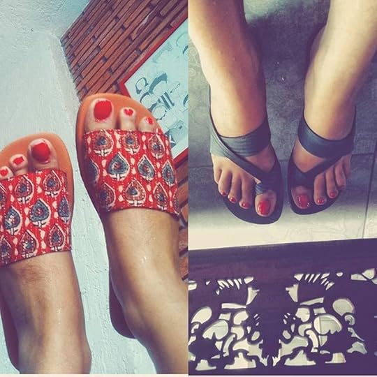 My new shoes are here from Paaduks just in time for our holiday next week! These are made from old truck tires, insanely comfortable and pretty cheap too. The ones on the right are completely waterproof, which may be of interest to my Goa friends and you know my very strong love of Kalamkari fabric. Hat tip to @manasisubramaniam who bought the first pair and then told us all about it. #whatiworetoday