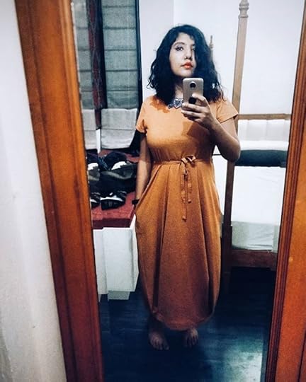 Face is a bit white as I'm experimenting with portrait mode on my phone, but at least you can see all my make up. This "Amish" dress sexed up a bit with a necklace and red lipstick. I'm off to karaoke. Or not karaoke but still drink a glass of red wine, the weather is perfect for it, isn't it? Interestingly, this rust is almost exactly the same colour as a school uniform sweater I once had. I was so miserable at that school, I couldn't wear the colour for ages but now I'm reclaiming it and when I put it on, I didn't think of school at all. Now that's what I call adulting. #whatiworetoday