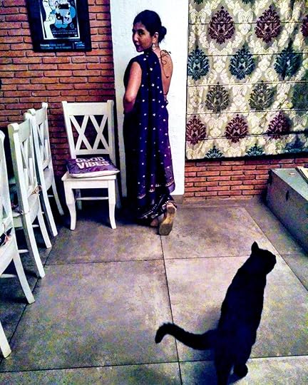 Portrait of a lady with her cat. A lady who--might I add--has gotten into her sari herself for the first time without help from Mum. K hung on to the pallu and helped me with the pleats. OK so my shoes are fully visible but all the better to make a run for it if need be instead of mincing about with demure ladylike steps. #sarinotsorry #suhaajraat