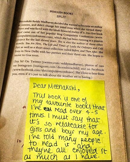 A teacher friend brought me a copy of Split to sign for one of her students. The student sent me this little note. So lovely to see such a well handled copy, a sign of a book being thumbed through several times. This is why I write. #splitthebook #theauthorlife
