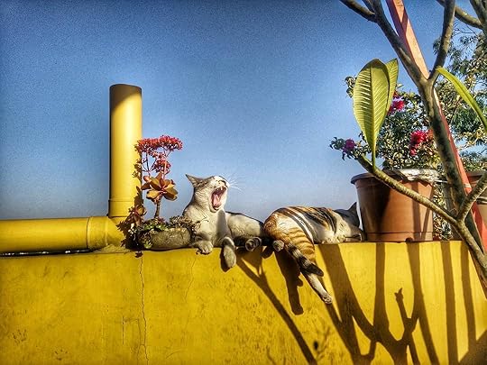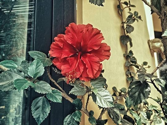 Hibiscus tree finally in bloom, ten months after we brought it home. First it looked sad and droopy, then it got attacked by aphids and then buds appeared only to whither where they stood. This is the first flower since we returned from Goa although the maid said there were plenty while we were gone. #terracegarden #hibiscus #spring