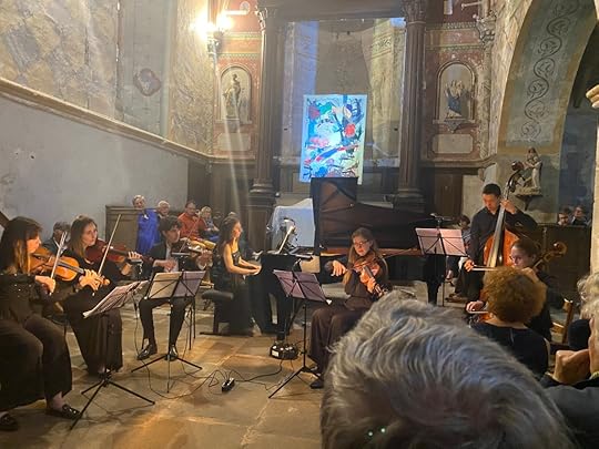 By chance, just after our arrival here last week, we heard about a concert consisting mainly of chamber music to be given by a group of young musicians. As I wrote in a previous post, it was a joy to be able to hear a chamber performance of Mozart’s piano concerto no.9. This, too, was given in a local church and was sold out. In fact, as we took our places we were able to witness the organisers bringing in extra chairs to accommodate all the music-lovers who wanted to attend the event.