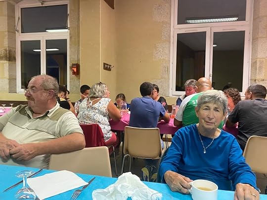 In the evening the village hall hosts a dinner, for which people have to register in advance. It is an opportunity for the local residents to get together in a spirit of companionship, as a break from the relative isolation of their daily lives in this rural community. On the evening when we participated in the meal some sixty people were seated at trestle tables and the food was served by young volunteers from the local population. The menu consisted of a wedge of potato pie accompanied by slices of salami, wine or beer according to one’s preference, followed by the obligatory cheese slice, a small helping of icecream, and coffee (or herb tea in our case). Our table neighbours were a pleasant couple from a nearby farm who grow a wide variety of vegetables, which they sell at local markets. It was a welcome opportunity to speak French and learn a little about the local way of life.