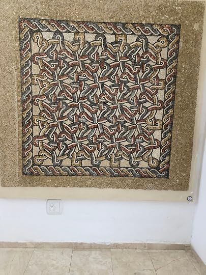 However, on our last return journey we found the time to enter the area belonging to Israel’s Nature and Parks Authority where the building is situated. Our detour was well worth the effort, as we were able to tour the site containing many beautiful ancient mosaics, some of them situated in the open air and others housed in the building originally erected by the British Mandate authorities as a police station on the route between Jerusalem and pilgrimage sites at the Jordan river. The red-coloured rock of the region has given it its name, Ma’aleh Edomim, and the now-destroyed Crusader fortress that once dominated the crest was known as Castrum Rouge.
