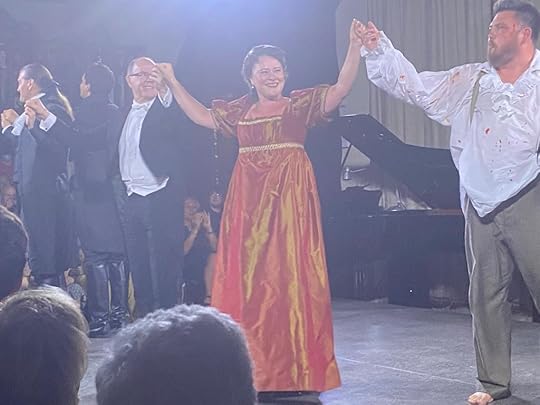 And of course, Ilona was outstanding as Tosca, a real diva, using her silvery voice to maximum effect and displaying impressive acting ability into the bargain. When she sang her principal aria, seeking mercy from the Lord and invoking her piety and her devotion to art, she managed to display such conviction that it brought tears to many eyes in the audience (including mine).