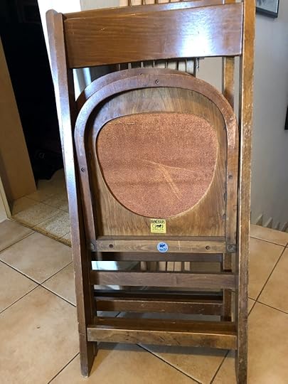 But for the next stage – coffee and cake – we decided to move indoors, and I began setting up the arrangements accordingly. Everything was going well until I decided to bring in some extra chairs from the garden. These were two rather ancient folding chairs, which have served us well for many years, and have not until now caused any untoward trouble.