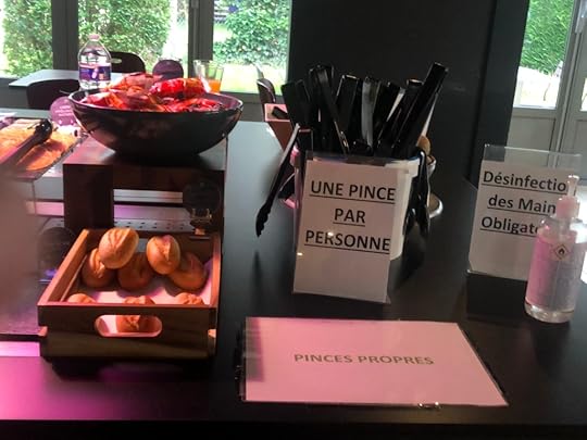 Our last couple of days were spent en route for Paris. We stayed overnight in the town of Orleans and managed to visit its impressive cathedral with stunning stained-glass windows portraying the events involving Joan of Arc. Stricter regulations to prevent the spread of Corona had just been introduced in France, and so we were required to present our ‘Green Passport,’ before we could enter the breakfast area of the hotel. Before touring the buffet there each guest was required to take a pair of large black plastic tongs (pince) with which to take food (see photo). I wonder if anything like that is being tried by any Israeli hotel.