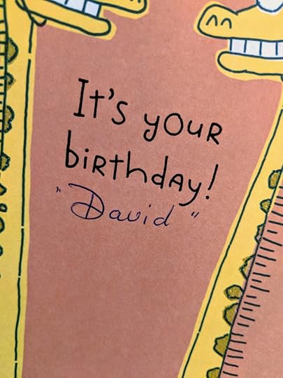 In the middle of an existential crisis because my grandmother always puts my name in quotes on birthday cards.Anyone else have this problem? #amwriting #whoami #quotedavidquote pic.twitter.com/3RRMkR32XS
