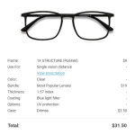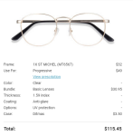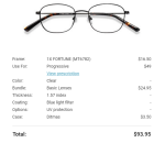 Here are the glasses with the options we ordered so you can see the phenomenal prices.
