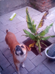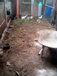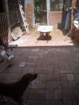 Then, my husband made a patio in the area between the animals and our house. During the rainy season, this area got quite muddy, so it’s a nice improvement. The bricks are not cemented down, so if we decided to change the purpose of the area, it won’t be a major hassle. Puppy loves it!