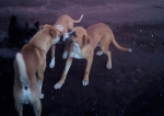 Since my husband and father-in-law started work on my sister-in-law’s house across the street, they allowed Lil’ Pup, Puppy and my father-in-law’s 3 dogs (a mama dog and her two pups) to hang out at the construction site. It’s just across the street, so you’d think that they’d be safe enough. Unfortunately, the neighbors up the road started up on their own construction project again about the same time. Puppy really, really doesn’t like them. Seriously. He goes completely ballistic when they drive past on their motorcycle. And with good reason. They make it their aim to hit Puppy with a big stick when he barks at them. Instead of discouraging Puppy from barking and chasing them, it infuriates him. In fact, they even slow down in front of our house looking for Puppy to come out and bark at them so they can hit him some more.