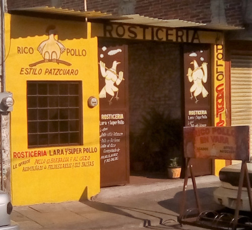 Rotiserías sell rotisserie chicken and the fixings often include rice, mole, some sort of bland pasta concoction and salsa. Fried chicken can be found at places that sell Pollo Familiar and come with pretty much the same fixings.