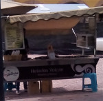 We then took a turn around the centro, which was very pleasant, and had some ice cream (another reference to the movie). There were a few nice statues, lots of benches to sit on, and a whole lotta shoe polishing carts. We admired La Casa de Visitas from our park bench.