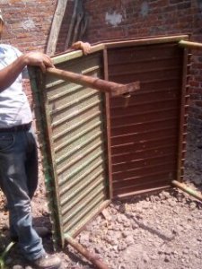 First, we turned our front gate to the animal area into a more or less solid set of doors. My husband used laminas (corrugated roofing) from a neighbor’s discarded chicken house (or at least that’s what the neighbor called it. I’m not convinced his chickens ever considered it a worthy home). As that bit of lamina wasn’t enough to completely cover the door, he bought a few more segments and had the welder come and finish the job.