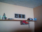 I also found what I think might have been part of a gun cabinet at a junk store and lo and behold it’s just the thing for some kitchen shelves.