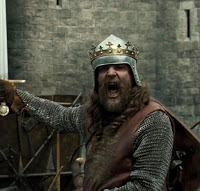 To the right, Richard in Ridley Scott's "Robin Hood," (2010), where he is a bloodthirsty fool.