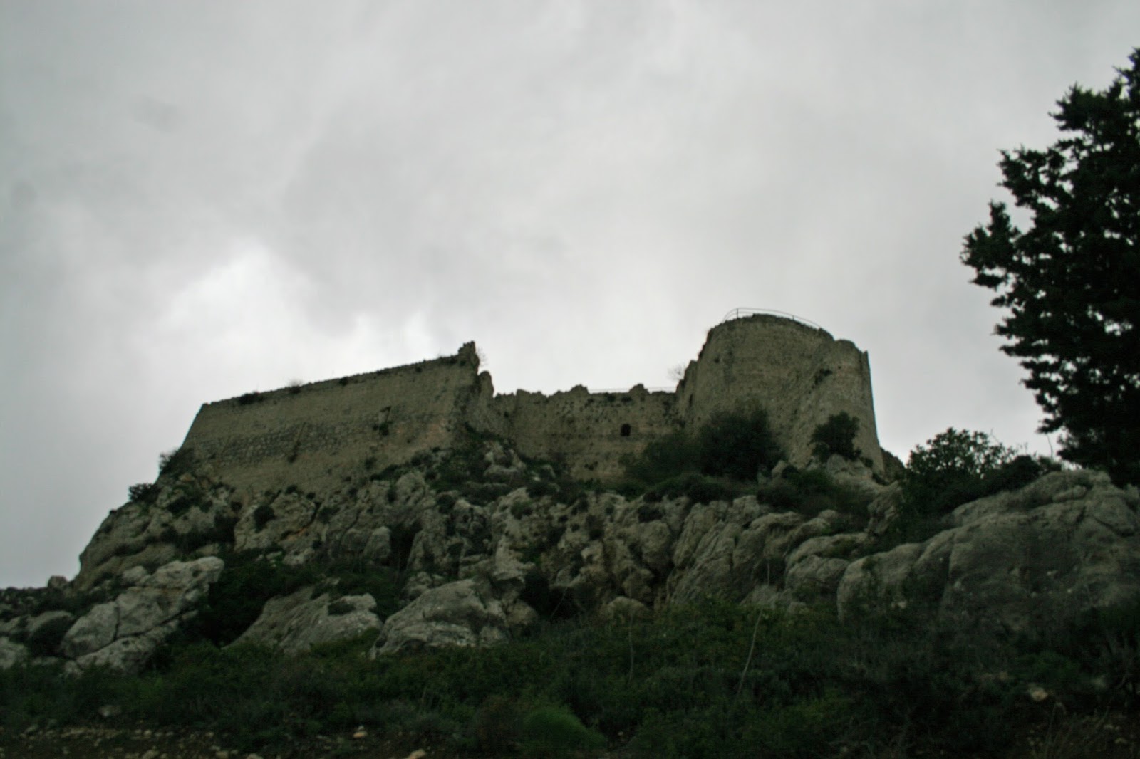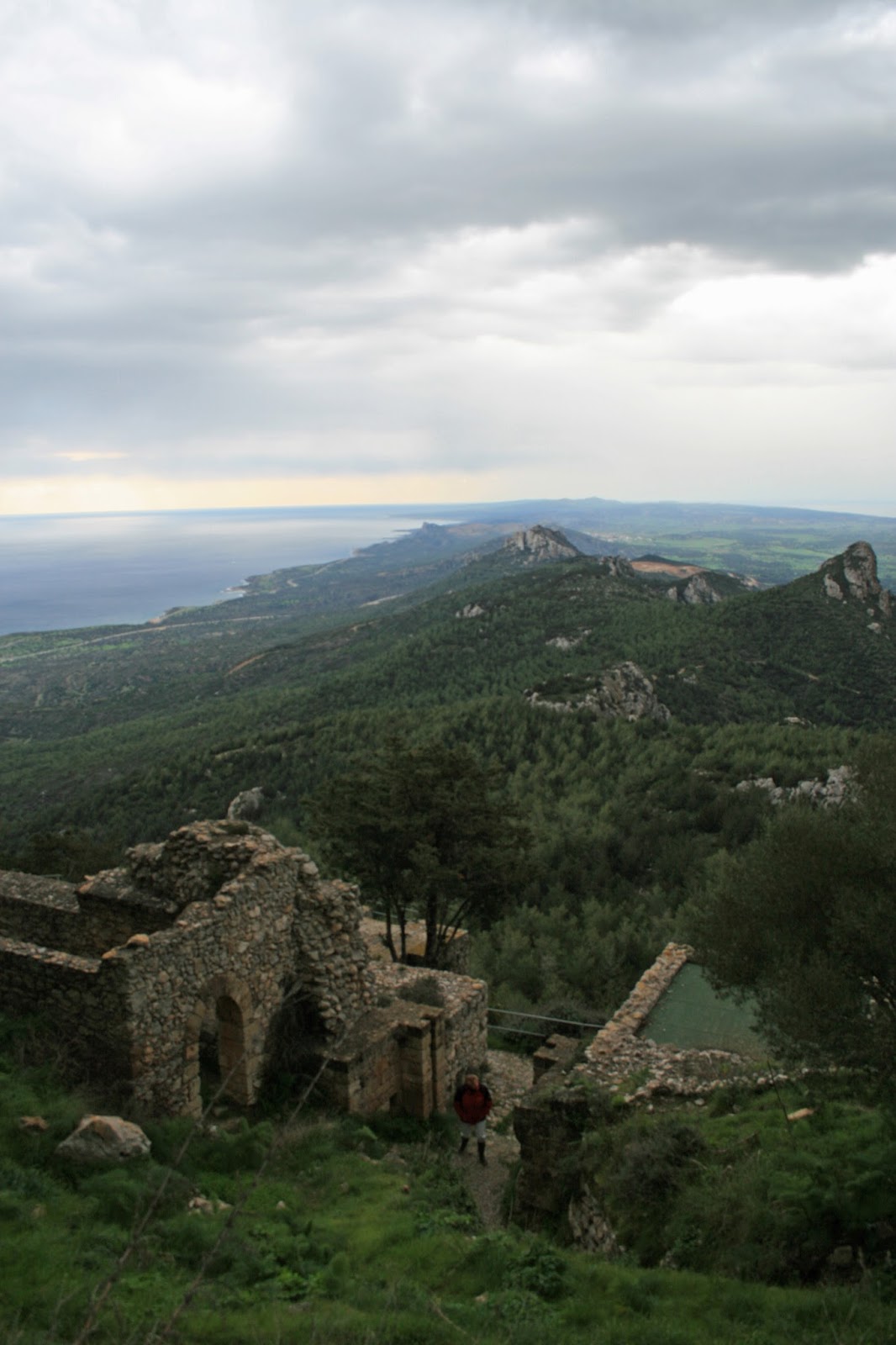 Kantara is located on the tip of a long, narrow ridge as the Kyrenia mountain range comes to an abrupt end overlooking the plain of Karpas. It sits 630 meters (2,067 feet) above the Mediterranean.