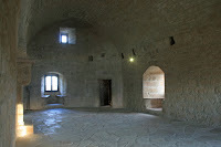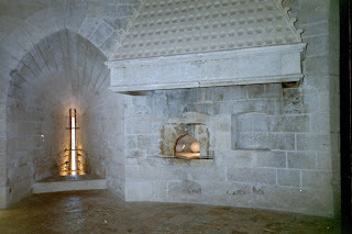 The basic building block of houses in the Holy Land were vaults. Barrel vaults were the easiest and most fundamental building block and could be stacked on top of one another at perpendicular angles for several stories. A good example of this is the Hospitaller Castle of Kolossi. Below are three images of vaulted chambers: one an upstairs chamber from the Hospitaller castle at Kolossi, one a cellar from the Byzantine/Crusader castle of St. Hilarion, and the third showing a wine or oil press in the ground-floor chamber, something very common in the crusader kingdoms.