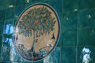 However, we also know that the Turks and Saracens were very fond of brilliant blues and turquoise tiles in later centuries, and these may also have been available to the crusaders. At least I like to imagine it so! Below is an example of modern tile work just to hint at the possibilities.