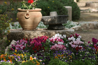 Last but not least, as the contemporary written descriptions stress, no description of urban architecture in the crusader states (at least for the “upper crust”) would be complete without reference to gardens. Frankish elites oriented their houses so that their (glazed) windows looked out at either views (such as the ocean) or gardens. The Holy Land offered a variety of beautiful vegetation from trees such a palms and olives, lemons and pomegranates, to flowers such as hibiscus and oleander. Frankish gardens would have been beautiful indeed. So to conclude, here is a picture of a garden in the crusader church of St. Anne in Jerusalem today.