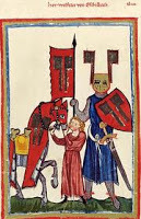 As a novelist, I wanted to integrate this important historical source into my story, and I decided that if a secular man was literary enough to write a history (albeit in the vernacular) in later years, he might have been a lover of literature as a young man too. My Ernoul is therefore a youth initially intended for the Church, who only finds himself in training at arms because of the untimely death of his elder brother. Once I'd made Ernoul a bit bookish, I found it easy to make him an amateur musician as well, and so a composer of songs. My Ernoul is, you see, not terribly good at knightly skills and so channels his energies into other fields. (An interpretation supported incidentally by the fact that Arnais de Gybelet, that Morgan believes to have been Ernoul's identity in 1232 was a noted jurist, i.e. still a man of the pen more than the sword.)