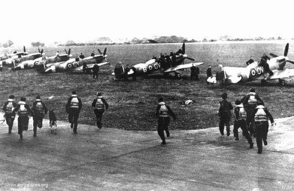 Pilots “Scramble” very early in the Battle. Courtesy of the Imperial War Museum