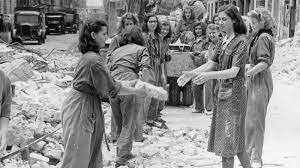 Gritting her teeth togetherunconsciously, [Charlotte] left the wide thoroughfare. There were nostreetlights, and no light came from the houses either. Almost all thebuildings here, if not completely destroyed, had lost their roof to fire. Theupper floors of many were gutted. Yet, most were still inhabited on the groundfloor and some on the first and second floors as well. Behind façades shorn ofplaster, people existed more than lived. They cooked a little food over awood-burning stove, crowded around a radio, perhaps, or read by the light of abulb dangling from the ceiling. No light escaped onto the street because therewas no glass to replace the shattered windows. Instead, the windows wereboarded up with plywood and cardboard or closed with heavy curtains. Yettrickles of smoke and the smell of cooked onions, carrots and potatoes oozingout into the cold, motionless air betrayed the presence of humans hidden in theruins.