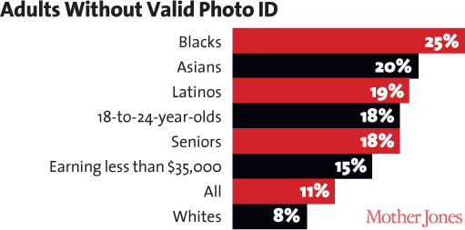 12 percent of minority voters report registering through voter drives, twice the rate of white voters. In 2011, Florida and Texas passed laws making registration drives much harder to organize.