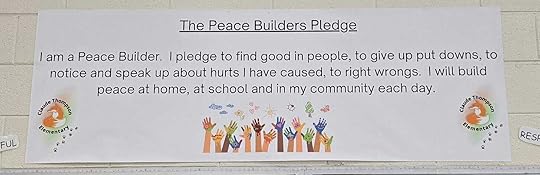 When I told the assembled K-2s, at the end of our time together today, that telling our stories is the way we create peace, the principal added, “We say a Peace Pledge every morning after the Pledge of Allegiance.” I said, “Really? I’d love to hear it.”