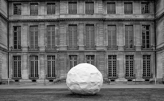 The image in the courtyard of the palace that houses the Musee Picasso (above) contrasts the regular patterns of windows in the background with the odd shape of the white ball thing in the foreground. Actually, there’s no way to know the scale of the white ball, which is interesting. Photography can render size as an illusion.