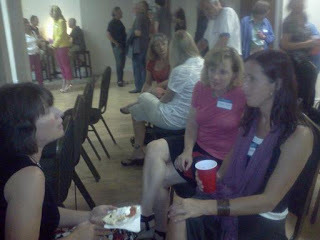 The festivities started Friday with a faculty reception at the amazing Lighthouse Writers Workshop, a party brimming with frivolity and libations. Mystery Ink authors Cricket McRae, Linda Hull, and Jess Lourey trade "war stories."