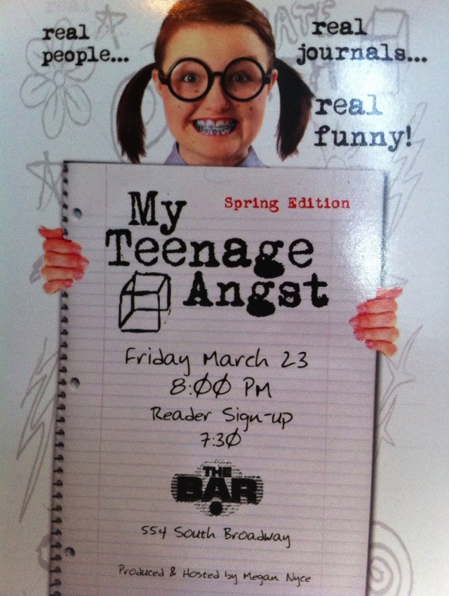 The crazy romantic ideas start early. Check out My Teenage Angst where writers share stories from adolescence about love and desire crashing and burning. The Spring edition is 8PM March 23, 2012 at The Bar on south Broadway.