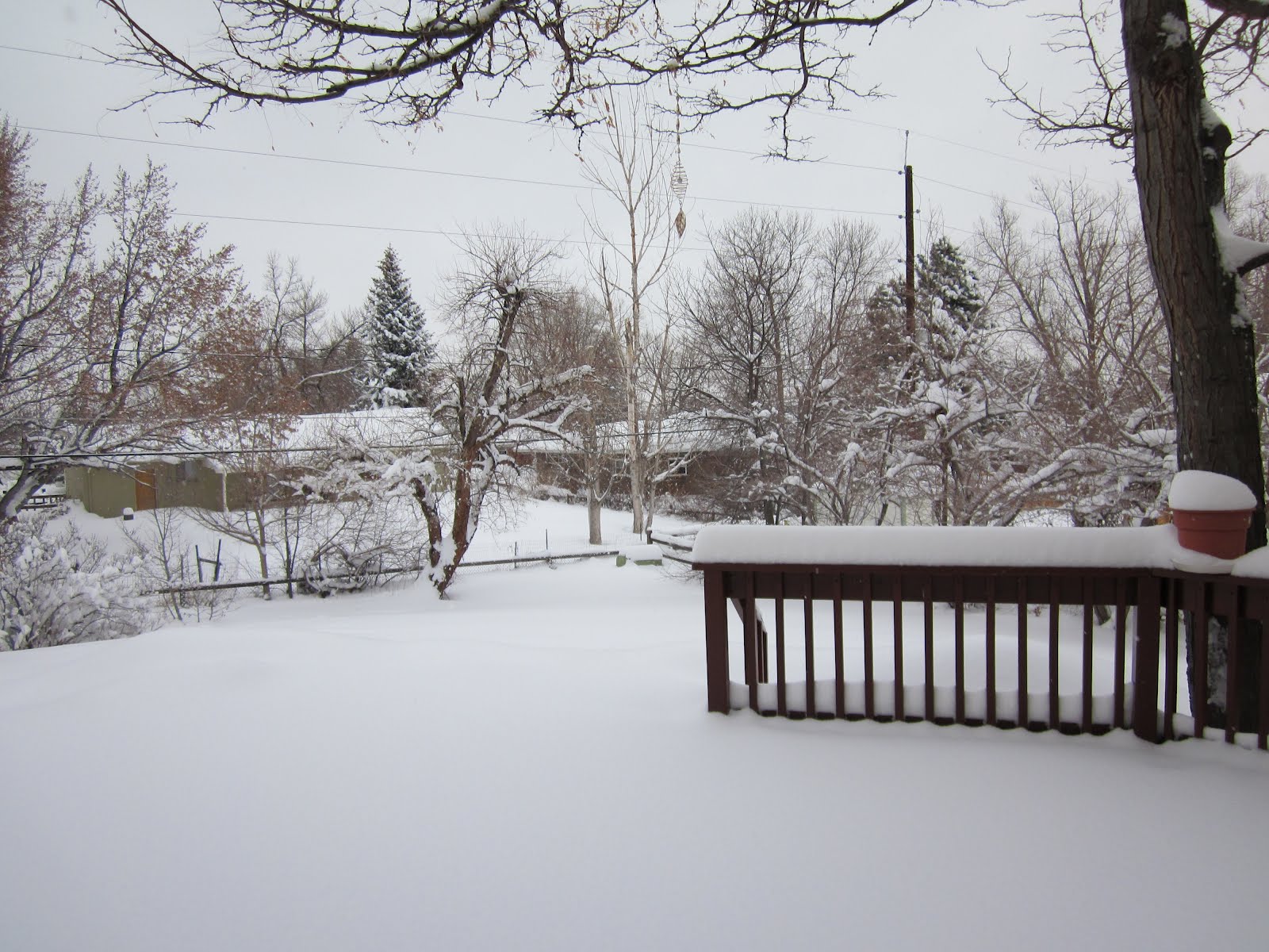 In case you missed it, we here in Denver were socked by a snowstorm last week. This is my back yard...23" of snow...the chiminea is buried, the birdbath is covered. Took us about eight hours over two days to dig ourselves out to the road. Did I mention how I love winter????