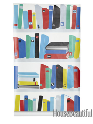 Some wallpaper to add that library look when you don't have real books (I know, I know--who could possibly have no real books?) House Beautiful