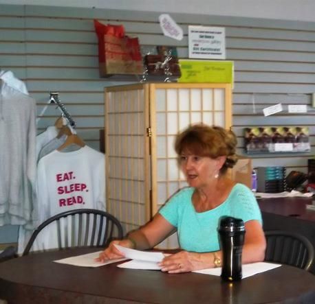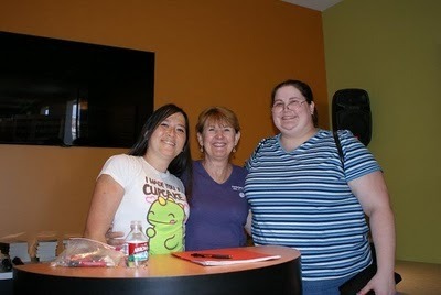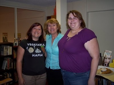A couple of pics I especially like-- Here's Sarah Brackett and Gina Silva at our first meeting about three years ago at the Mystery & Imagination Bookstore in Glendale...