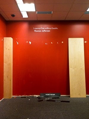 This photo by Reddit user Jessers25 is just heartbreaking. While the subject matter is inherently sad, the thoughtful composition is what elicits an even stronger emotional response. The first thing that comes to mind with this photograph is the "rule of thirds"; note the way the structural components of the store cut the image into separate, contrasting color blocks: the gunmetal of the industrial carpet, the shadowy off-white of the ceiling, and the glare of corporate red. Note the curious placement of the wood panels—the asymmetry throws the viewer off-balance, leaving her unprepared and therefore devastated by the quiet irony of the Thomas Jefferson quote. Only after moments of reflection do you realize that "World History" are sneakily the cruelest words of all: