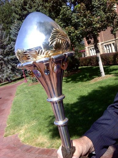 The provost carried the official university mace--a.k.a the beatin' stick--made of Colorado silver, gold, and precious stones. Despite howls of protest (mainly from me), the mace wasn't used to sacrifice anyone to appease the gods.